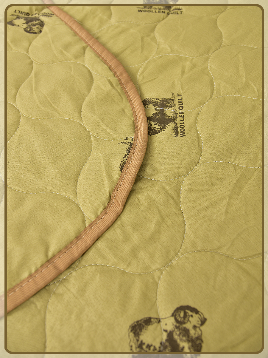 Одеяло овечья шерсть легкое полиэстер. Изготовлено из тонкой прослойки наполнителя для комфорного сна в летний период.