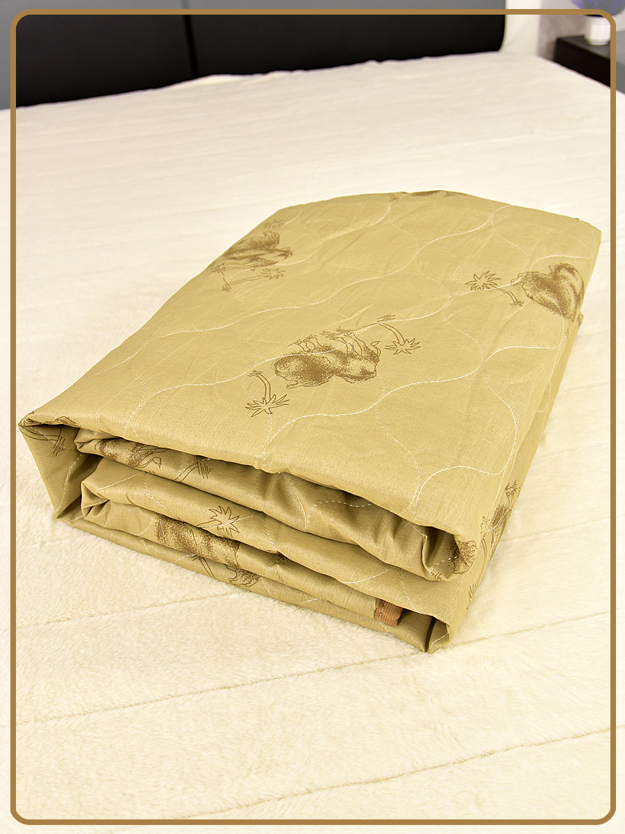 Одеяло верблюжья шерсть легкое полиэстер. Изготовлено из тонкой прослойки наполнителя для комфорного сна в летний период.